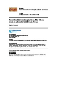 Heywood, S. ORCID: https://orcid.org/0000-0001-6641-2065 (2018) Power to children’s imaginations: May ’68 and counter culture for children in France. Strenae (13). 1838. ISSN 2109-9081 doi: 10.4000/strenae.1838