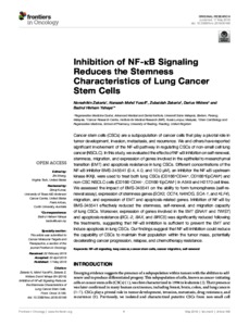 Zakaria, N., Yusoff, N. M., Zakaria, Z., Widera, D. ORCID: https://orcid.org/0000-0003-1686-130X and Yahaya, B. H. (2018) Inhibition of NF-κB signalling reduces the stemness characteristics of lung cancer stem cells. Frontiers in Oncology, 8. 166. ISSN 2234-943X doi: 10.3389/fonc.2018.00166