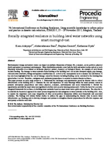 Adeyeye, K., Bairi, A., Emmitt, S. and Hyde, K. (2018) Socially-integrated resilience in building-level water networks using smart microgrid+net. Procedia Engineering, 212. pp. 39-46. ISSN 18777058 doi: 10.1016/j.proeng.2018.01.006