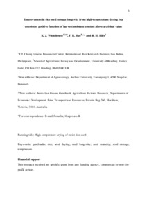 Whitehouse, K. J., Hay, F. R. and Ellis, R. H. ORCID: https://orcid.org/0000-0002-3695-6894 (2018) Improvement in rice seed storage longevity from high-temperature drying is a consistent positive function of harvest moisture content above a critical value. Seed Science Research, 28 (4). pp. 332-339. ISSN 1475-2735 doi: 10.1017/S0960258518000211