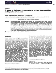 Grundy, M. M.-L., Lapsley, K. and Ellis, P. R. (2016) A review of the impact of processing on nutrient bioaccessibility and digestion of almonds. International Journal of Food Science & Technology, 51 (9). pp. 1937-1946. ISSN 09505423 doi: 10.1111/ijfs.13192