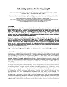 Ghaffarianhoseini, A., AlWaer, H., Omrany, H., Ghaffarianhoseini, A., Alalouch, C., Clements-Croome, D. and Tookey, J. (2018) Sick building syndrome: are we doing enough? Architectural Science Review, 61 (3). pp. 99-121. ISSN 0003-8628 doi: 10.1080/00038628.2018.1461060