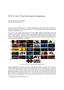 Haworth, G. ORCID: https://orcid.org/0000-0001-9896-1448 and Hernandez, N. (2019) TCEC12: the 12th Top Chess Engine Championship. ICGA Journal, 41 (1). pp. 24-30. ISSN 1389-6911 doi: 10.3233/ICG-190090