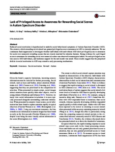 Lack of privileged access to awareness for rewarding social scenes in Autism Spectrum Disorder