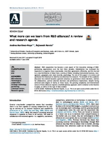 Martinez-Noya, A. and Narula, R. ORCID: https://orcid.org/0000-0002-4266-2681 (2018) What more can we learn from R&D alliances? A review and research agenda. Business Research Quarterly, 21 (3). pp. 195-212. ISSN 2340-9436 doi: 10.1016/j.brq.2018.04.001