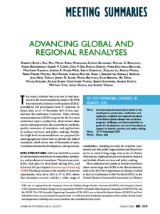 Buizza, R., Poli, P., Rixen, M., Alonso-Balmaseda, M., Bosilovich, M. G., Brönnimann, S., Compo, G. P., Dee, D. P., Desiato, F., Doutriaux-Boucher, M., Fujiwara, M., Kaiser-Weiss, A. K., Kobayashi, S., Liu, Z., Masina, S., Mathieu, P.-P., Rayner, N., Richter, C., Seneviratne, S. I., Simmons, A. J., Thépaut, J.-N., Auger, J. D., Bechtold, M., Berntell, E., Dong, B., Kozubek, M., Sharif, K., Thomas, C., Schimanke, S., Storto, A., Tuma, M., Välisuo, I. and Vaselali, A. (2018) Advancing global & regional reanalyses. Bulletin of the American Meteorological Society, 99 (8). ES139-ES144. ISSN 0003-0007 doi: 10.1175/BAMS-D-17-0312.1