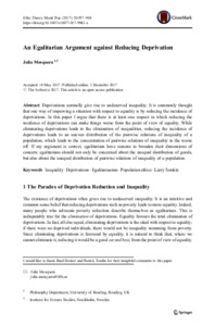 Mosquera, J. (2017) An egalitarian argument against reducing deprivation. Ethical Theory and Moral Practice, 20 (5). pp. 957-968. ISSN 1572-8447 doi: 10.1007/s10677-017-9842-x