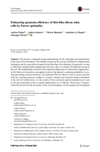 Patanè, A., Santoro, A., Romano, V., Magna, A. L. and Nicosia, G. (2018) Enhancing quantum efficiency of thin-film silicon solar cells by Pareto optimality. Journal of Global Optimization, 72 (3). pp. 491-515. ISSN 0925-5001 doi: 10.1007/s10898-018-0639-9