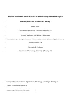 The role of the cloud radiative effect in the sensitivity of the Intertropical Convergence Zone to convective mixing.