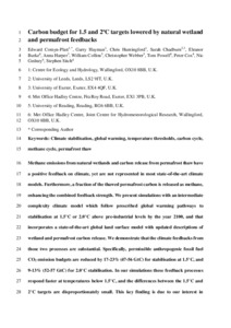 Carbon budget for 1.5 and 2oC targets lowered by natural wetland and permafrost feedbacks.