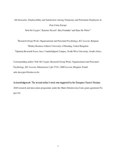 Job insecurity, employability and satisfaction among temporary and permanent employees in post-crisis Europe.