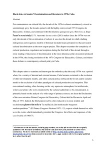 For commentators on cultural life, the decade of the 1970s is almost unanimously viewed as unremittingly grey: the decade opened with the highly controversial 1971 Congreso de Educación y Cultura, and continued with the infamous quinquenio gris. However, as Jorge Fornet’s recent study El 71. Anatomía de una crisis (2013) makes clear, the 1970s was not only the decade of the sovietisation of culture; it was also the decade in which clashing endogenous and exogenous models of literature included many perspectives that advocated cultural decolonisation as the most urgent project. This chapter examines the complexity of cultural production, regulation and reception during the first half of this decade through a close reading of discourses of decolonisation in the most infamous policy document produced in the 1970s, the closing resolution of the 1971 Congreso de Educación y Cultura, and relates those debates to contemporary cultural policy in Cuba.