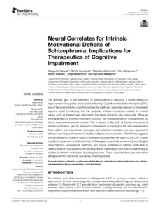 Takeda, K., Sumiyoshi, T., Matsumoto, M., Murayama, K., Ikezawa, S., Matsumoto, K. and Nakagome, K. (2018) Neural correlates for intrinsic motivational deficits of schizophrenia; implication for therapeutics of cognitive impairment. Frontiers in Psychiatry, 9. 178. ISSN 1664-0640 doi: 10.3389/fpsyt.2018.00178