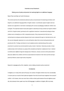 Costley, T. (2014). English as an additional language, policy and the teaching and learning of Englis in England. Language and Education, 28(3), 276-292.
