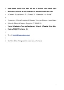 Uncontrolled Keywords chop length, forage ratio, milk production, particle size distribution, ryegrass silage