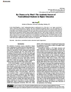 In the United Kingdom, a “good” undergraduate degree is understood to be a “first class” or an “upper second class,” which is achieved by three-quarters of students. The need to distinguish oneself from others is ever more important in an increasingly crowded graduate market, although a first-class degree is most likely achieved by privileged students. Informed by Bourdieu’s theory of habitus and capital, this study explores the educational experiences and trajectories of 30 final-year high-achieving nontraditional (HANT) students through in-depth interviews. These include working-class, minority ethnic, and/or mature students at university. We found that prior development in academic study skills and the desire to prove oneself, often in response to previous negative experiences, are key ingredients in academic success. Our HANT students also seem to find inspiration or support from significant others, an educational capital, although these resources are often by chance rather than by plan. Implications for policy and practice are suggested.