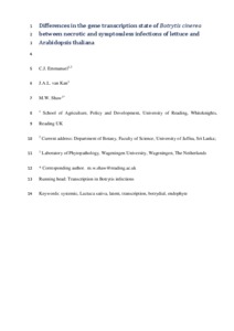 Shaw MW, Emmanuel CJ, Emilda D, Terhem RB, Shafia A, Tsamaidi D, Emblow M, van Kan, JAL. 2016. Analysis of cryptic, systemic Botrytis infections in symptomless hosts. Frontiers in Plant Science 7: 625. doi: 10.3389/fpls.2016.00625