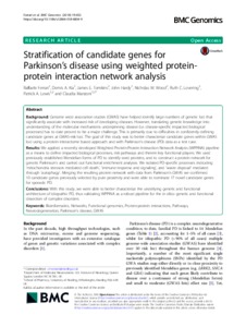 Ferrari, R., Kia, D. A., Tomkins, J. E., Hardy, J., Wood, N. W., Lovering, R. C., Lewis, P. A. and Manzoni, C. (2018) Stratification of candidate genes for Parkinson’s disease using weighted protein interaction network analysis. BMC Genomics, 19. 452. ISSN 1471-2164 doi: 10.1186/s12864-018-4804-9
