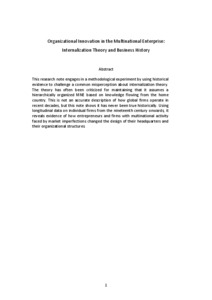 Organizational innovation in the multinational enterprise: internalization theory and business history.