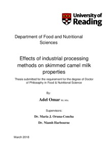 Omar, A. (2018) Effects of industrial processing methods on skimmed camel milk properties. PhD thesis, University of Reading.