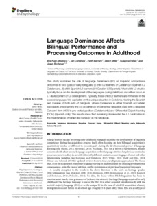 Language dominance affects early bilingual performance and processing outcomes in adulthood.