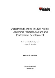 Alhammadi, M. (2018) Outstanding schools in Saudi Arabia: leadership practices, culture and professional development. PhD thesis, University of Reading. doi: 10.48683/1926.00077932