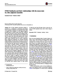 ENSO feedbacks and their relationships with the mean state in a flux adjusted ensemble.