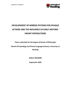 Rayson, H. (2017) Development of mirror systems for opaque actions and the influence of early mother-infant interactions. PhD thesis, University of Reading.