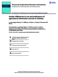Gender differences in use and preferences of agricultural information sources in Pakistan.