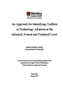 Nadee, W. (2017) An approach for identifying conflicts in technology adoption at the informal, formal and technical level. In: UNSPECIFIED. (Unpublished)