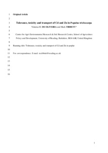De Oliveira, V. H. and Tibbett, M. ORCID: https://orcid.org/0000-0003-0143-2190 (2018) Tolerance, toxicity and transport of Cd and Zn in Populus trichocarpa. Environmental and Experimental Botany, 155. pp. 281-292. ISSN 0098-8472 doi: 10.1016/j.envexpbot.2018.07.011