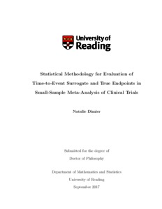 Dimier, N. (2017) Statistical methodology for evaluation of time-to-event surrogate and true endpoints in small-sample meta-analysis of clinical trials. PhD thesis, University of Reading.