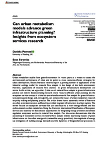 Perrotti, D. and Stemke, S. (2020) Can urban metabolism models advance green infrastructure planning? Insights from ecosystem services research. Environment and Planning B: Urban Analytics and City Science, 47 (4). pp. 678-694. ISSN 2399-8091 doi: 10.1177/2399808318797131