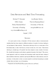 At a given point in time, a forecaster will have access to data on macroeconomic variables that have been subject to different numbers of rounds of revisions, leading to varying degrees of data maturity. Observations referring to the very recent past will be first-release data, or data which has as yet been revised only a few times. Observations referring to a decade ago will typically have been subject to many rounds of revisions. How should the forecaster use the data to generate forecasts of the future? The conventional approach would be to estimate the forecasting model using the latest vintage of data available at that time, implicitly ignoring the differences in data maturity across observations. The conventional approach for real-time forecasting treats the data as given, that is, it ignores the fact that it will be revised. In some cases, the costs of this approach are point predictions and assessments of forecasting uncertainty that are less accurate than approaches to forecasting that explicitly allow for data revisions. There are several ways to “allow for data revisions,” including modeling the data revisions explicitly, an agnostic or reduced-form approach, and using only largely unrevised data. The choice of method partly depends on whether the aim is to forecast an earlier release or the fully revised values.