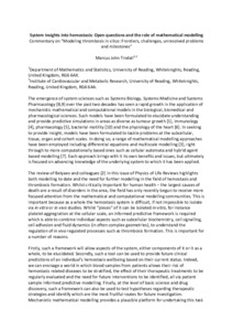 Tindall, M. J. (2018) System insights into hemostasis: open questions and the role of mathematical modelling: comment on “Modeling thrombosis in silico: Frontiers, challenges, unresolved problems and milestones” by A.V. Belyaev et al. Physics of Life Reviews, 26-27. pp. 106-107. ISSN 1571-0645 doi: 10.1016/j.plrev.2018.06.011