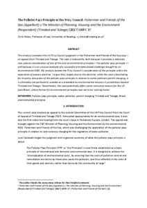 The Polluter Pays Principle in the Privy Council: Fishermen and Friends of the Sea (Appellant) v The Minister of Planning, Housing and the Environment (Respondent) (Trinidad and Tobago) [2017] UKPC 37.
