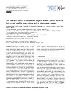 Song, Q., Zhang, Z., Yu, H., Seiji, K., Yang, P., Colarco, P., Remer, L. and Ryder, C. ORCID: https://orcid.org/0000-0002-9892-6113 (2018) Net radiative effects of dust in the tropical North Atlantic based on integrated satellite observations and in situ measurements. Atmospheric Chemistry and Physics, 18. pp. 11303-11322. ISSN 1680-7316 doi: 10.5194/acp-18-11303-2018