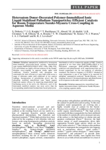 Heteroatom donor-decorated polymer-immobilized ionic liquid stabilized palladium nanoparticles: efficient catalysts for room-temperature suzuki-miyaura cross-coupling in aqueous media.