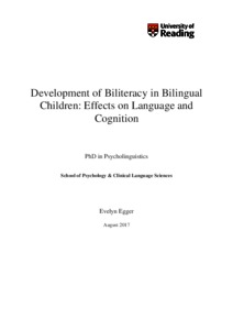 Egger, E. (2017) Development of biliteracy in bilingual children: effects on language and cognition. PhD thesis, University of Reading.
