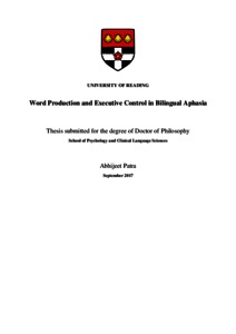 Patra, A. (2018) Word production and executive control in bilingual aphasia. PhD thesis, University of Reading.