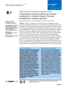 Abdulai, S., Nkegbe, P. K. and Donkoh, S. A. (2018) Assessing the technical efficiency of maize production in northern ghana: the data envelopment analysis approach. Cogent Food & Agriculture, 4 (1). pp. 1-14. ISSN 2331-1932 doi: 10.1080/23311932.2018.1512390