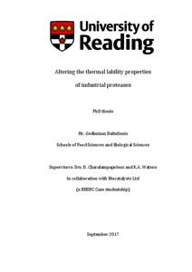 Baltulionis, G. (2018) Altering the thermal lability properties of industrial proteases. PhD thesis, University of Reading. doi: 10.48683/1926.00078889