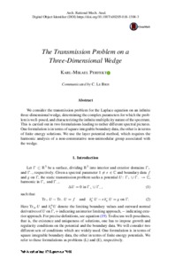 Perfekt, K.-M. (2019) The transmission problem on a three-dimensional wedge. Archive for Rational Mechanics and Analysis, 231 (3). pp. 1745-1780. ISSN 0003-9527 doi: 10.1007/s00205-018-1308-3