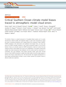 Critical Southern Ocean climate model biases traced to atmospheric model cloud errors.