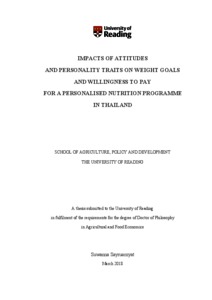 Sayruamyat, S. (2018) Impacts of attitudes and personality traits on weight goals and willingness to pay for a personalised nutrition programme in Thailand. PhD thesis, University of Reading.