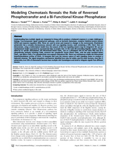 Tindall, M. J., Porter, S. L., Maini, P. K. and Armitage, J. P. (2010) Modeling chemotaxis reveals the role of reversed phosphotransfer and a bi-functional kinase-phosphatase. PLoS Computational Biology, 6 (8). e1000896. ISSN 1553-734X doi: 10.1371/journal.pcbi.1000896