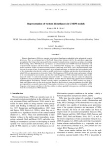 Western disturbances (WDs) are synoptic extratropical disturbances embedded in the subtropical westerly jet stream. They are an integral part of the South Asian winter climate, both for the agriculture-supporting precipitation they bring to the region and for the associated isolated extreme events that can induce devastating flash flooding. Here, WD behaviour and impacts are characterised in 23 CMIP5 historical simulations and compared with reanalysis and observations. It is found that WD frequency has a strong relationship with model resolution: higher resolution models produce significantly more WDs, and a disproportionately high fraction of extreme events. Exploring metrics of jet strength and shape, we find that the most probable cause of this relationship is that the jet is wider in models with coarser resolution, and therefore the northern edge in which WDs are spun up sits too far north of India. The frequency of WDs in both winter and summer is found to be overestimated by most models, and thus the winter frequency of WDs estimated from the multi-model mean (30 winter−1) is above the reanalysis mean (26 winter−1). In this case, the error cannot be adequately explained by local jet position and strength. Instead, we show that it is linked with a positive bias in upstream mid-tropospheric baroclinicity. Despite a positive winter precipitation bias in CMIP5 models over most of India and Pakistan and a dry bias in the western Himalaya, the fraction of winter precipitation for which WDs are responsible is accurately represented. Using partial correlation, it is shown that the overestimation in WD frequency is the largest contributor to this bias, with a secondary, spatially heterogeneous contribution coming from the overestimation of WD intensity.