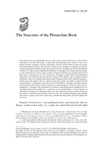 Duff, T. E. ORCID: https://orcid.org/0000-0002-7000-4950 (2011) The structure of the Plutarchan book. Classical Antiquity, 30 (2). pp. 213-278. ISSN 1067-8344 doi: 10.1525/CA.2011.30.2.213