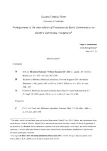 In this article I discuss the relationships between the extant manuscript tradition of Francesco da Buti’s commentary on Dante’s Purgatorio. My argument shows that the constitutio textus cannot be arrived at in a mechanical way, owing to the numerous contaminations and interpolations. I thus offer some general methodological reflections on how to critically edit a long prose text whose MSS tradition is densely contaminated. With this in mind I make the case that the most appropriate way to approach the making of the edition is to base the text on a single authoritative manuscript.