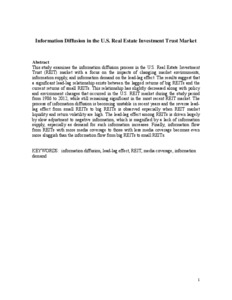 This study examines the information diffusion process in the U.S. Real Estate Investment Trust (REIT) market with a focus on the impacts of changing market environments, information supply, and information demand on the lead-lag effect. The results suggest that a significant lead-lag relationship exists between the lagged returns of big REITs and the current returns of small REITs. This relationship has slightly decreased along with policy and environment changes that occurred in the U.S. REIT market during the study period from 1986 to 2012, while still remaining significant in the most recent REIT market. The process of information diffusion is becoming unstable in recent years and the reverse lead-lag effect from small REITs to big REITs is observed especially when REIT market liquidity and return volatility are high. The lead-lag effect among REITs is driven largely by slow adjustment to negative information, which is magnified by a lack of information supply, especially as demand for such information increases. Finally, information flow from REITs with more media coverage to those with less media coverage becomes even more sluggish than the information flow from big REITs to small REITs.